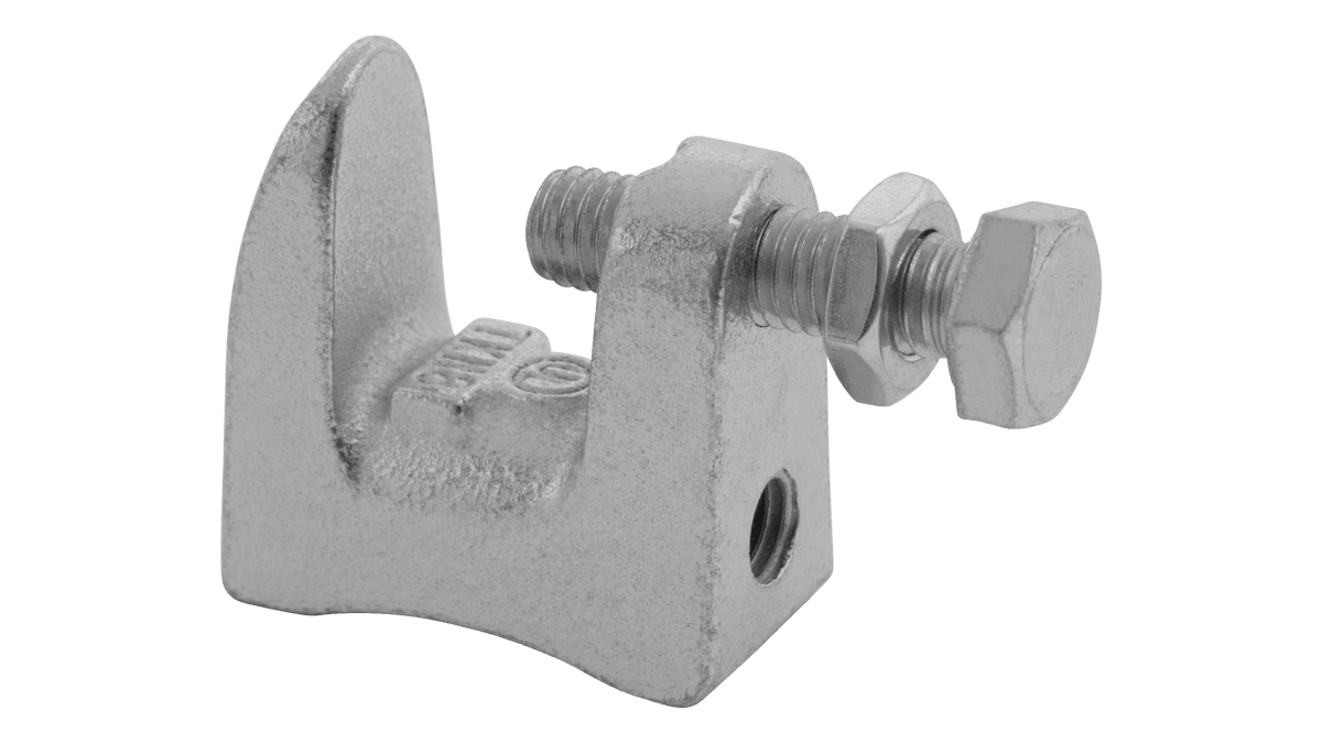 Mordaza metálica para la sujeción de varillas roscadas en viga metálica